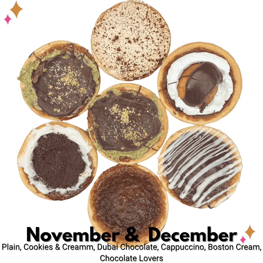 • Boston Cream – Vanilla custard filling with chocolate drizzle on top of our tart shell.